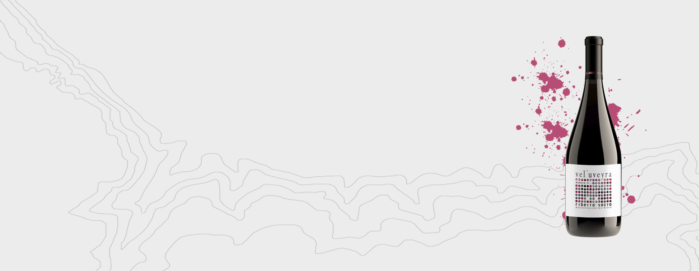 Three monovarietal wines elaborated with wide varieties of Ribeira Sacra(godello, treixadura and dona branca). In ancient galician language, Ourive means goldsmith, craftsman of gold and silver. The label shows the different contour lines of the landscape above which the vineyards and the winery are located, reflected in the Sil river.